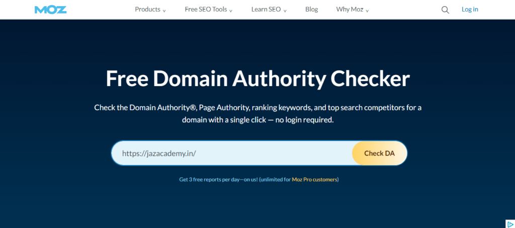 Moz created the Domain Authority (DA) statistic, which indicates a website’s likelihood of ranking highly on search engine result pages (SERPs). Websites are given a score between 1 and 100, where higher scores indicate a higher potential to rank.